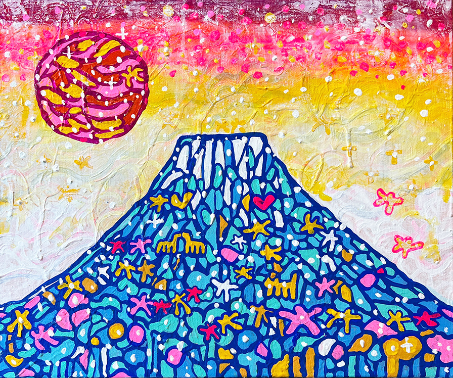 私は、何度も富士を描くことで、それがただ“在るもの”ではなく、出会うたびに意味を変え、かたちを変えて立ち上がる“ゆらぎの存在”であることを確かめているのかもしれません。見る者の心が触れたとき、風景はふと輪郭を持つ。