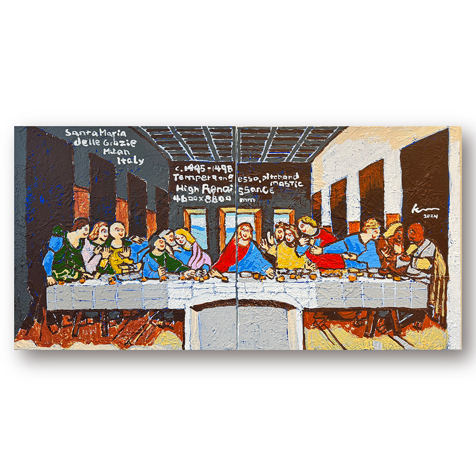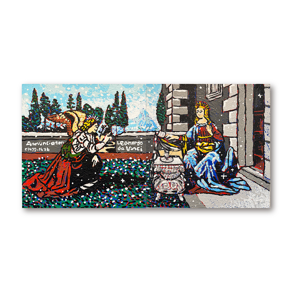 松田光一の作品にたびたび登場する、レオナルド・ダ・ヴィンチ作品へのオマージュは、単なる再現でも模倣でもない。それはむしろ、「歴史と現在」「普遍と個」のあいだに横たわる見えない対話を、絵画というかたちで浮かび上がらせようとする試みである。